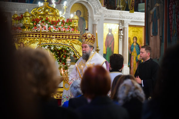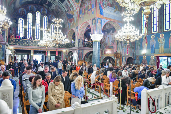 Με την παρουσία πλήθους ευλαβών πιστών τελέσθηκε το Μέγα Σάββατο, η ακολουθία του Εσπερινού και η θεία Λειτουργία του Μεγάλου Βασιλείου, ιερουργούντος του Μητροπολίτη Σερρών και Νιγρίτης κ. Θεολόγου εντός του ιερού Κουβουκλίου του Επιταφίου στον ιερό Μητροπολιτικό Ναό Παμμ. Ταξιαρχών Σερρών. «Το θαύμα της Αναστάσεως δεν είναι ιδεολογία, ή αφήγημα, αλλά πρόταση ζωής!», είπε μεταξύ άλλων ο Σεβασμιώτατος στην ομιλία του.