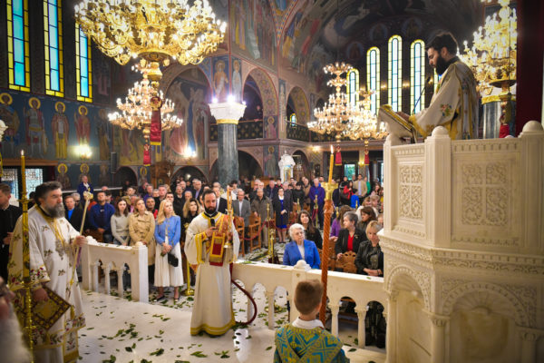 Ο Σεβασμιώτατος κ. Θεολόγος ευχήθηκε πατρικώς στους συμπροσευχομένους πιστούς, που κατέκλισαν από νωρίς το πρωί τον ιερό Μητροπολιτικό Ναό για να εκκλησιασθούν και να μεταλάβουν από το Ποτήριον της Ζωής, ευλογημένη και ψυχοσωτήριο Ανάσταση, σημειώνοντας μεταξύ άλλων και τα εξής: