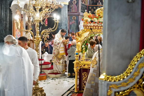 Η πίστη στην Ανάσταση του Κυρίου μας οδηγεί στην μέθεξη του μυστηρίου της νέας εν Χριστώ ζωής. Αυτήν την αθάνατη ζωή και μάλιστα στην πληρότητά της, ο Χριστός την καθιστά μεθεκτή μέσα από τα χαριτοφόρα και ζωογόνα μυστήρια της αγίας Εκκλησίας μας. Η Ανάσταση του Χριστού ανυψώνει, φωτίζει, αγιάζει, αιωνίζει όλη την ζωή του πιστού ανθρώπου, κάνοντας τα πάντα νέα, αγιασμένα, μοσχομυρισμένα με το άρωμα της αθανασίας. Ο αναστάς Κύριός μας Ιησούς Χριστός, ο πρωτουργός της σωτηρίας μας, εκουσίως υπέστη φρικτά βασανιστήρια, εσταυρώθη, ετάφη και διά της θεοπρεπούς Αναστάσεώς Του, εθριάμβευσε και ενίκησε, και όχι μόνο ενίκησε, αλλά και συνέτριψε τον θάνατο, τον αδυσώπητο τύραννο και εχθρό του ανθρωπίνου γένους και τον διάβολο. Τα τρόπαια δε αυτής της νίκης τα εχάρισε στον άνθρωπο. ‘’Μηδείς φοβείσθω θάνατον’’, αναφωνεί το χρυσό στόμα της Εκκλησίας μας, ο θείος Χρυσόστομος, ‘’ἠλευθέρωσε γάρ ἡμᾶς τοῦ Σωτῆρος ὁ θάνατος. Ἀνέστη Χριστός καί νεκρός οὐδείς ἐπί μνήματος! Ἀνέστη Χριστός καί ζωή πολιτεύεται!’’. Ο θάνατος, ο ανίκητος έως τότε εχθρός, μετεβλήθη σε πέρασμα, διάβαση από την παρούσα ζωή στην πραγματική ζωή, στο φως, στην χαρά, στην θεοκοινωνία. Ο θάνατος με την δύναμη του Σωτήρος μας απέβαλλε την πικρή του φύση και μετεβλήθη σε ταπεινό υπηρέτη του ανθρώπου. Ο ίδιος ο αναστάς Κύριος γίνεται για τον καθένα μας το μυστικό και αιώνιο Πάσχα -διάβαση-, από τον θάνατο στη ζωή. Ιδού γιατί σήμερα λαμπροφορούμε. Πανηγυρίζουμε τον θάνατο του θανάτου. Εορτάζουμε την απαρχή της νέας αιωνίου βιοτής. Αυτή η νέα ζωή αναβλύζει από το μυστήριο του Σταυρού του Κυρίου μας και στερεώνεται στο κενό μνημείο του αναστάντος Χριστού.