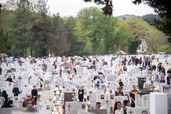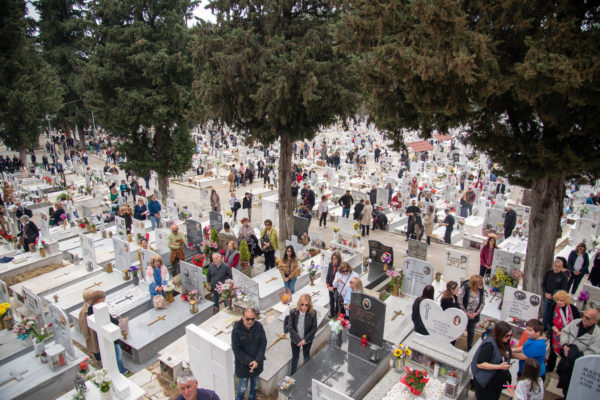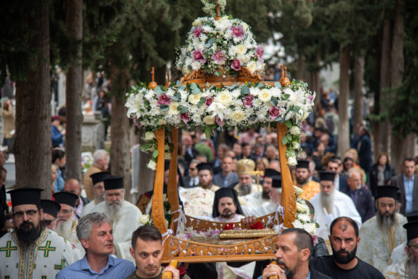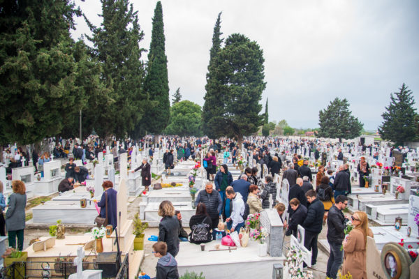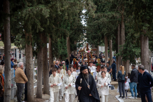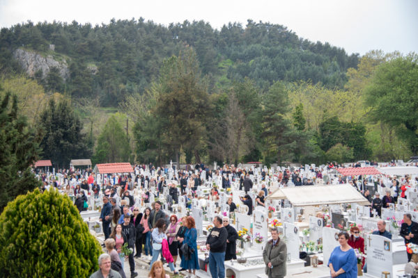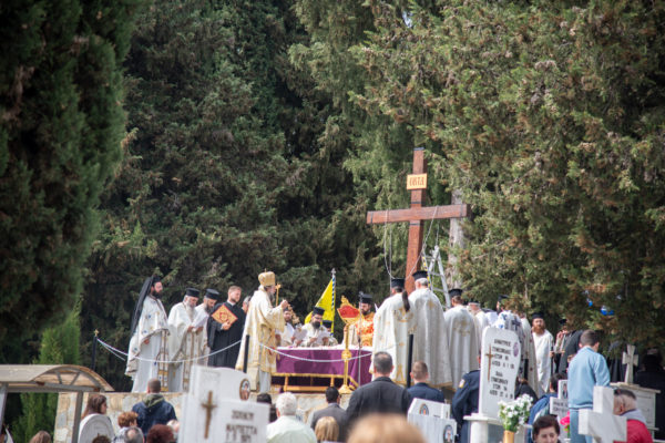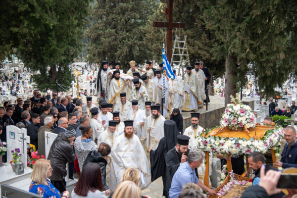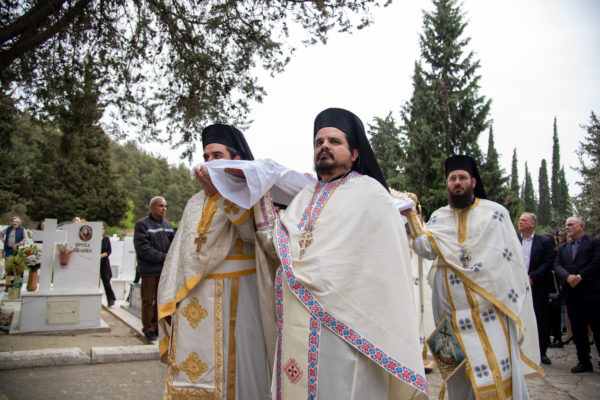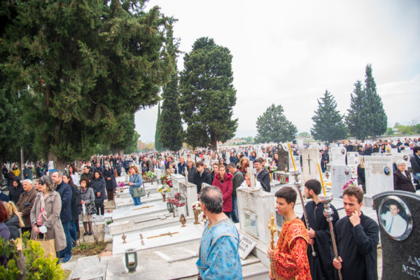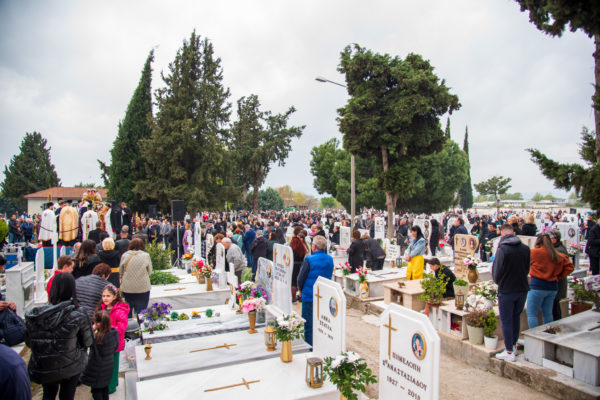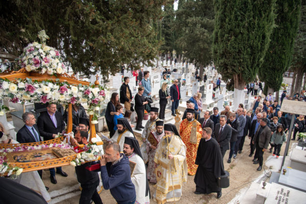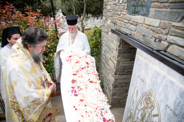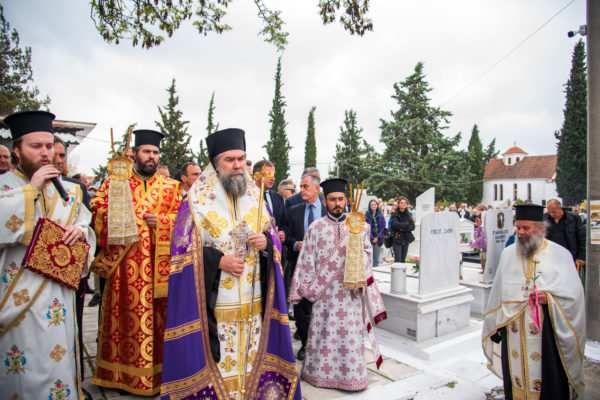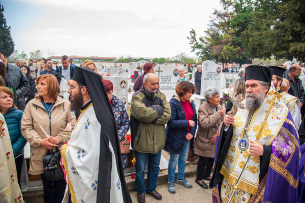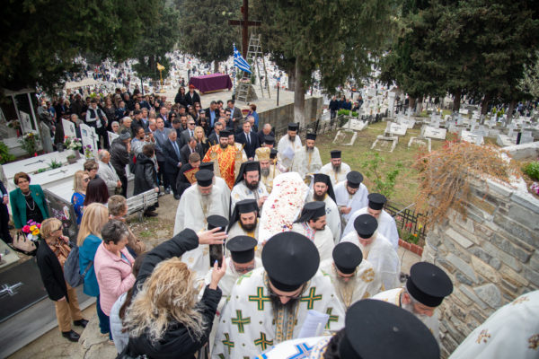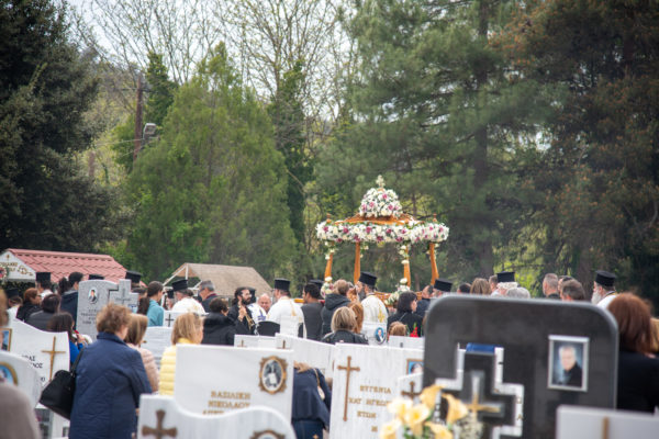 Ακολούθως, στις 12:30 το μεσημέρι, στον χώρο έμπροσθεν του ιερού Ναού Ζωοδόχου Πηγής του Β’ Κοιμητηρίου Σερρών, τελέσθηκε η ιερά ακολουθία του Επιταφίου θρήνου, κατά την διάρκεια της οποίας ο χοροστατών Σεβασμιώτατος κ. Θεολόγος, ανέπεμψε ειδική δέηση υπέρ αναπαύσεως των ψυχών και των εκ της νόσου Covid-19, κεκοιμημένων αδελφών, οι οποίοι αναπαύονται στο ως είρηται Κοιμητήριο και πραγματοποιήθηκε η εντός του Κοιμητηρίου λιτάνευση του Επιταφίου.