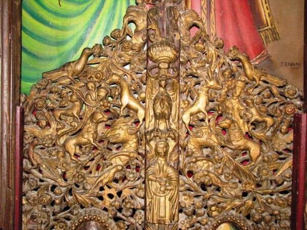 Τον ιστορικό αυτό ναό της Εκκλησίας των Σερρών στολίζει ένα υψηλής καλλιτεχνικής ποιότητας ξυλόγλυπτο τέμπλο, διαστάσεων 15×5,50 μέτρων. Το τέμπλο εντυπωσιάζει με την κατάφορτη διακόσμησή του και τις αφηγηματικές σκηνές συμβολικού και διδακτικού περιεχομένου, από την Παλαιά και Καινή Διαθήκη και χαρακτηρίζεται για την οργάνωση του πλούσιου διάκοσμου, την λεπτομερή τεχνική απόδοση των γλυπτών παραστάσεων, την φυσιοκρατική απόδοση με επιμέρους λεπτομέρειες και την πλαστικότητά του.