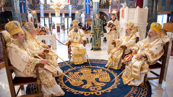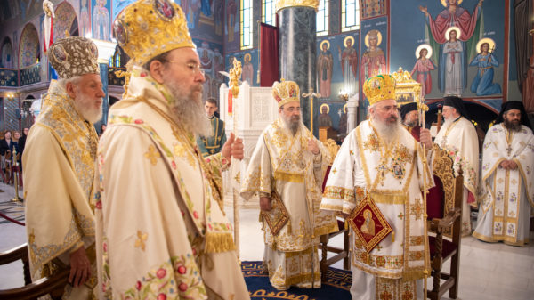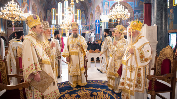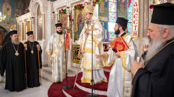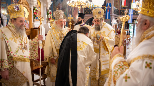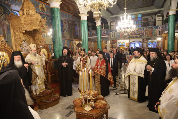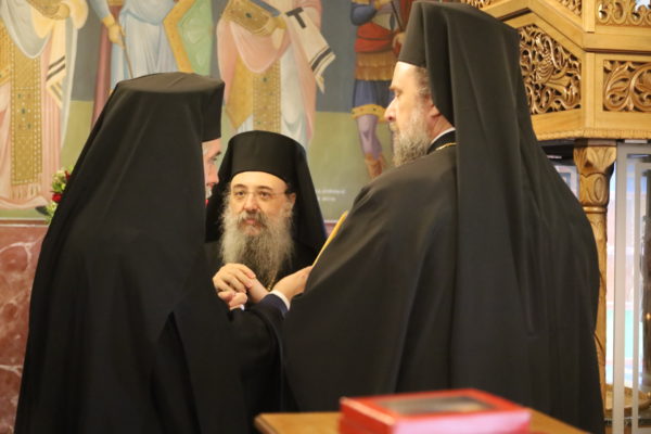 Αυτής της πνευματικής χαρμονής, μέτοχοι και κοινωνοί υπάρχουμε σήμερον άπαντες, τόσο οι Σεβασμιώτατοι αδελφοί Αρχιερείς, όσο και ο ιερός μας κλήρος, οι Άρχοντες και ο φιλάγιος λαός του Θεού.