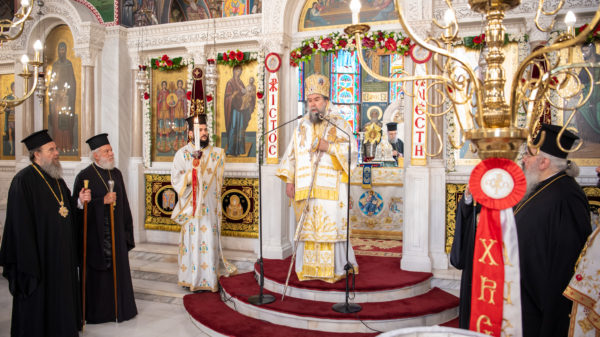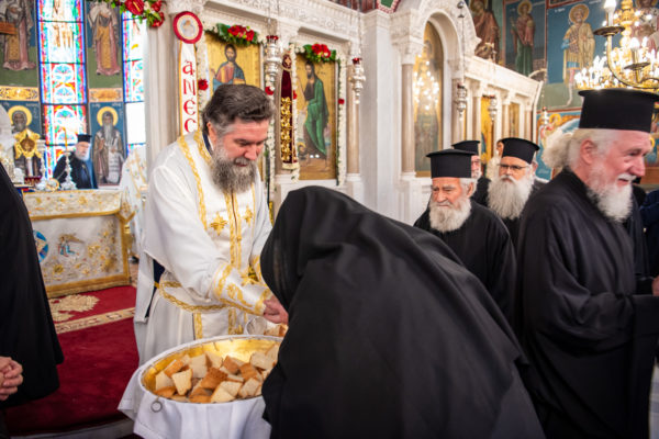 Μετά την ευλόγηση της εορτίου αρτοκλασίας, ο Σεβασμιώτατος Μητροπολίτης κ. Θεολόγος, αφού ευχαρίστησε καταλλήλως, διά θερμών λόγων τους Σεβασμιωτάτους Αρχιερείς, τους φιλογενείς Άρχοντες του τόπου και τον φιλέορτο λαό του Θεού, για την συγκινητική, συμπροσευχητική τους παρουσία, σημείωσε μεταξύ άλλων και τα εξής: