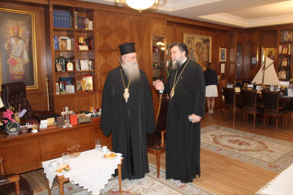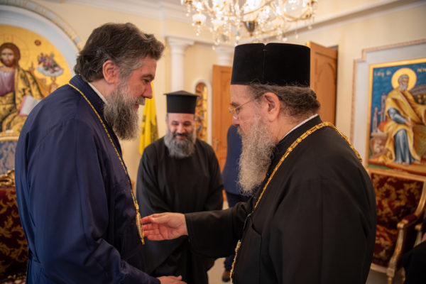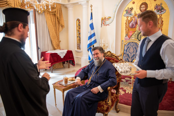 Τέλος, ο Σεβασμιώτατος Μητροπολίτης κ. Θεολόγος δέχθηκε στο Επισκοπείο Σερρών τον Αρχιγραμματέα της Ιεράς Συνόδου της Εκκλησίας της Ελλάδος, πανοσιολ. Αρχιμανδρίτη π. Ιωάννη Καραμούζη, ο οποίος διεβίβασε δεόντως εγκάρδιες ευχές και προσρήσεις του Μακαριωτάτου Προέδρου κ.κ. Ιερωνύμου Β’ και των μελών του Ιερού Συνοδικού Σώματος.
