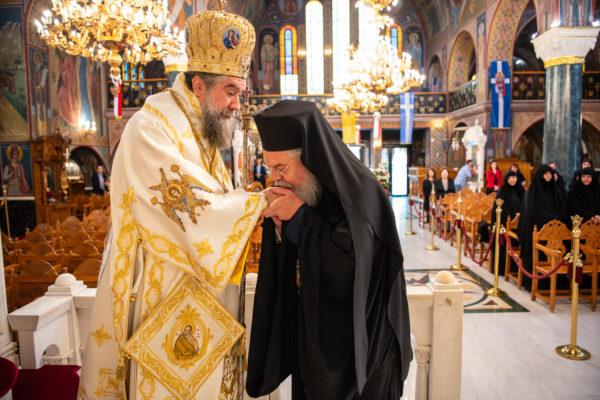 Σεβασμιώτατε, άγιε αδελφέ, ευχόμεθα εκ βάθους καρδίας, ο Θεός να Σας χαρίζει εις έτη ως πλείστα στην αγία Εκκλησία Του, ώστε να συνεχίζετε να Τον διακονείτε χριστομιμήτως, ως πράττετε άριστα, ως σήμερακαι να Τον δοξάζετε. Εμείς δε, οι πνευματικοί σας αδελφοί και γνήσιοι φίλοι σας, ως επίσης και τα πνευματικά Σας παιδιά, ο κλήρος και ο λαός του Θεού, να σας χαιρόμεθα εις έτη πολλά, σώον, έντιμον, υγιά, μακροημερεύοντα και ορθοτομούντα τον λόγον της Αυτού αληθείας».