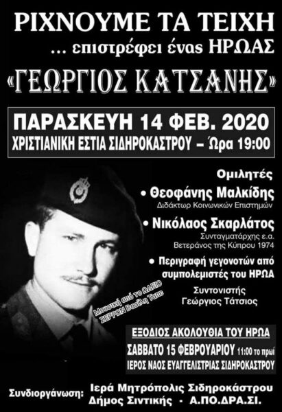 ΡΙΧΝΟΥΜΕ ΤΑ ΤΕΙΧΗ… επιστρέφει ένας Ήρωας. Παρασκευή 14 Φεβρουαρίου 2020, Χριστιανική Εστία Σιδηροκάστρου και ώρα 19.00.