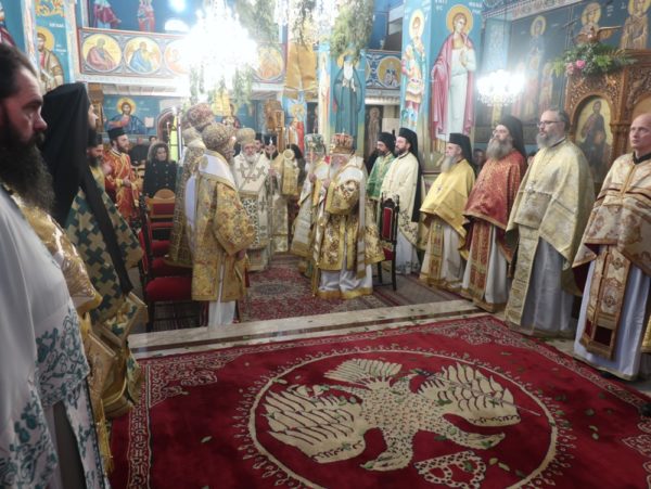 Συμμετείχε πλήθος Ιερέων, Μοναχών, και πιστών, οι οποίοι, παρά την κακοκαιρία, προσήλθαν για να συμπροσευχηθούν και ευχηθούν στον εορτάζοντα Ποιμενάρχη τους.