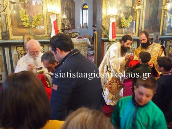 Στην Αρχιερατική Θεία Λειτουργία προεξήρχε ο Σεβασμιώτατος Μητροπολίτης, συλλειτουργούντων των Ιερέων της ενορίας, πρωτοπρεσβυτέρου π. Βασιλείου, πρωτοπρεσβυτέρου π. Νέστορα και του Διακόνου Αγαθονίκου.