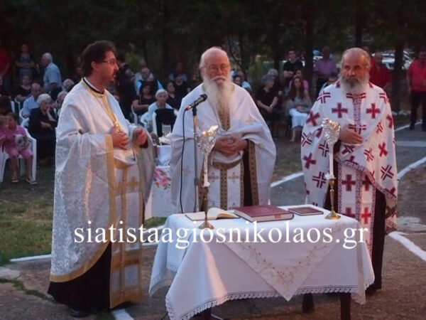 Την Παρασκευή το απόγευμα, παραμονή της εορτής, εψάλη ο Μέγας Πανηγυρικός Εσπερινός, τελέσθηκε αρτοκλασία και ακολούθησε η περιφορά της εικόνας του Αγίου Κοσμά, από τους Ιερείς, τον πρωτοπρεσβύτερο Βασίλειο Βασιλείου, τον πρωτοπρεσβύτερο Νέστορα Γκουρομίσιο και τον πρωτοπρεσβύτερο Κύρο Βαβλιάρα, προσευχομένων πολλών πιστών από τη Σιάτιστα και τη γύρω περιοχή. Στο τέλος του εσπερινού ο π. Βασίλειος κήρυξε τον θείο λόγο αναφερθείς στην επιμονή του Αγίου Κοσμά να τηρεί και να κηρύττει ακριβώς τον λόγο του Θεού, και την επιθυμία του να τηρούν και οι πιστοί ακριβώς τον λόγο του Θεού.