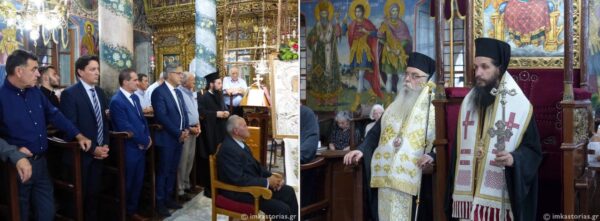 Της Ακολουθίας του Εσπερινού προέστη ο οικείος Ποιμενάρχης, Σεβασμιώτατος Μητροπολίτης Σισανίου και Σιατίστης κ. Αθανάσιος συγχοροστατούντος από του παραθρονίου του Σεβασμιωτάτου Μητροπολίτου Καστορίας κ. Σεραφείμ. Ο Προϊστάμενος του Ιερού Ναού Αρχιμανδρίτης Νικόλαος Αλεξίου προσεφώνησε τον οικείο Ποιμενάρχη και τον φιλοξενούντα Μητροπολίτη Καστορίας.