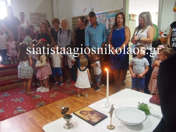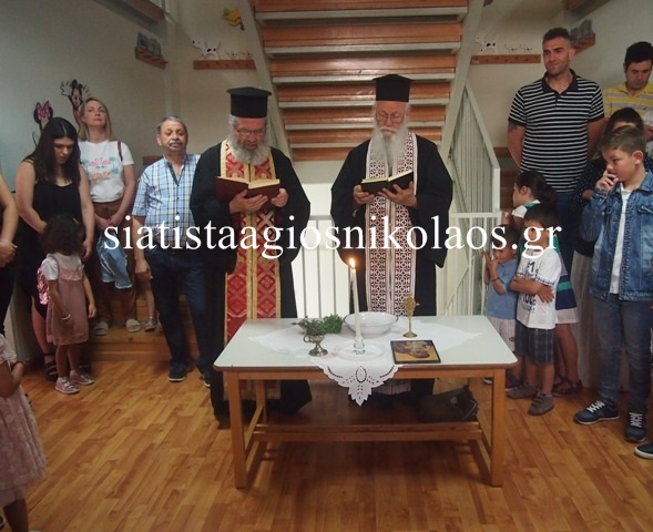 Το πρωί στις 9:00 της Τετάρτης 11 Σεπτεμβρίου 2019, οι Ιερείς της Ενορίας, π. Βασίλειος και π. Νέστορας, τέλεσαν τον αγιασμό στο 2ο Νηπιαγωγείο, «Κωνσταντίνος και Ελένη Παπανικολάου», με την παρουσία των Νηπιαγωγών, των νηπίων και των γονέων τους. Ο π. Βασίλειος έδωσε τις δικές του ευχές στα παιδιά και πρόσφερε εκ μέρους της Ενορίας Αγίου Νικολάου Σιατίστης ένα βιβλίο για τα παιδιά, όπως κάνει κάθε χρόνο. Ακολούθησε η Διευθύντρια του Νηπιαγωγείου κα Άννα Τύπα, η οποία καλωσόρισε τα παιδιά, τα ευχήθηκε καλή σχολική χρονιά και έδωσε τις πρώτες συμβουλές της.