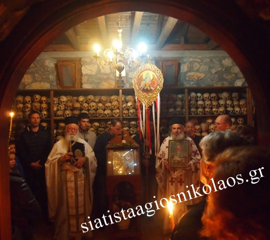 Εντός του πιο παλαιού οστεοφυλακίου, όπου υπάρχουν οστά κεκοιμημένων από το 1700, εψάλη το δοξαστικό των αίνων, «Ἀναστάσεως ἡμέρα…», ενώ κατά τη διάρκεια της περιφοράς εψάλη από όλους τους πιστούς πολλές φορές το «Χριστός Ανέστη».