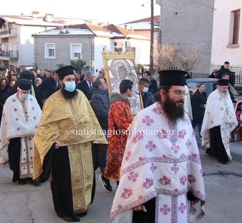 Με τη συνοδεία της Φιλαρμονικής του Δήμου Βοΐου η εικόνα συνοδεύτηκε μέχρι τον Ιερό Ναό του Αγίου Νικολάου Σιάτιστας, όπου τελέστηκε ο Α΄ Κατανυκτικός Εσπερινός της Μεγάλης Τεσσαρακοστής.