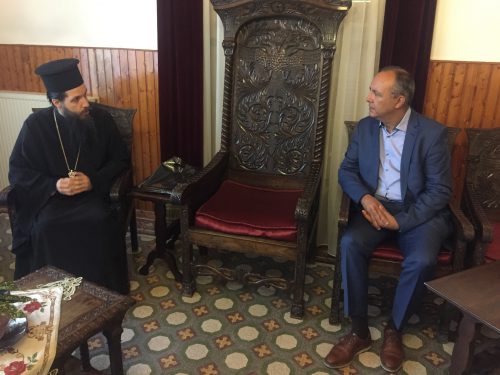 Το πρόγραμμα των επισκέψεων του Υφυπουργού Εσωτερικών (Μακεδονίας και Θράκης) ξεκίνησε από τη Σιάτιστα. Αρχικά συναντήθηκε με τον Σεβασμιώτατο Μητροπολίτη Σισανίου και Σιατίστης κ. Αθανάσιο, με τον οποίο συζήτησαν θέματα κοινού ενδιαφέροντος, ενώ στη συνέχεια επισκέφθηκε το Δήμο Βοΐου. Εκεί, ο Δήμαρχος κ. Χρήστος Ζευκλής παρουσίασε τον αναπτυξιακό σχεδιασμό του Δήμου, ζητώντας τη συνδρομή του κ. Καράογλου στην επίλυση πολεοδομικών ζητημάτων που αντιμετωπίζει η Δημοτική Υπηρεσία Δόμησης.
