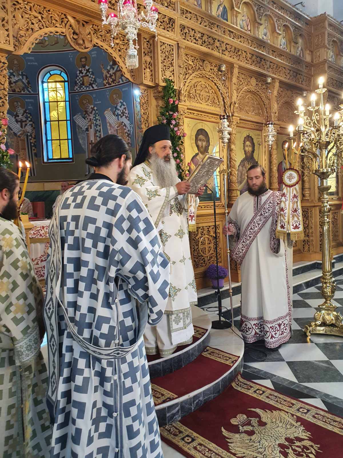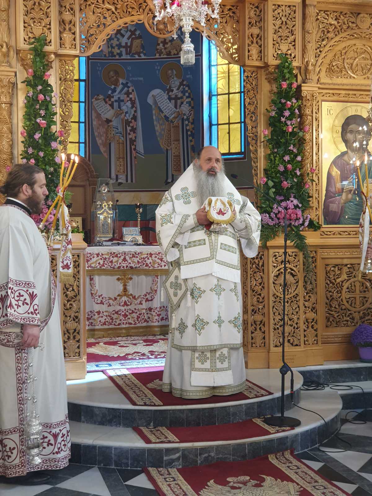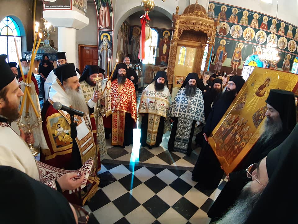 Προ του πανηγυρικού Εσπερινού, το απόγευμα του Σαββάτου, έγινε η υποδοχή της καινούργιας εφεστίου ιεράς εικόνας των Οσίων καθώς και η ενθρόνισή της στο μόνιμο ξυλόγλυπτο προσκυνητάρι της.