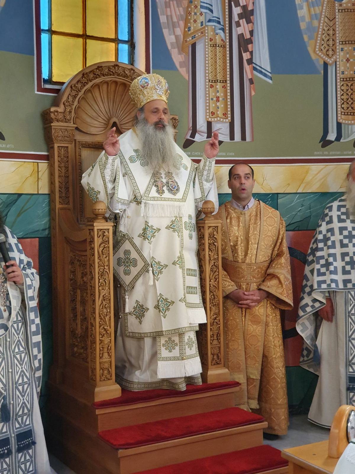 Το πρωί της Κυριακής, κύρια ημέρα της εορτής, μίλησε καταλλήλως ο Καθηγούμενος της Ιεράς Μονής του Μεγάλου Μετεώρου και Πρωτοσύγκελλος της Ιεράς Μητροπόλεως, Αρχιμανδρίτης κ. Νήφων Καψάλης. Αναφέρθηκε ιδιαιτέρως στην παρακαταθήκη που έχουν κληρονομήσει οι σύγχρονοι μοναστές των Μετεωρίτικων Μονών αλλά και οι κάτοικοι της Καλαμπάκας και της ευρύτερης περιοχής. “Η κληρονομιά αυτή”, όπως τόνισε, “δεν αποτελείται μόνο από τα υλικά αντικείμενα και τα έργα τέχνης που κοσμούν τα μοναστήρια, αλλά έγκειται σε κάτι βαθύτερο και πνευματικότερο. Οι Άγιοι Μετεωρίτες Πατέρες, με τον βίο τους, μας δείχνουν τον δρόμο προς την θέωση και την Ανάσταση, την οποία οι ίδιοι βίωσαν από την επίγεια ζωή τους.”