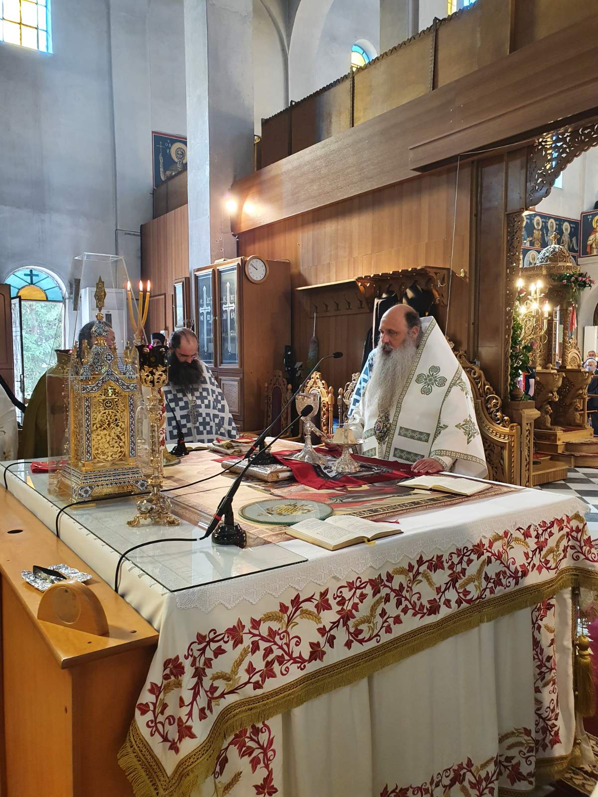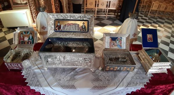 Κατά τις λατρευτικές συνάξεις προς τιμήν των Αγίων, ετέθησαν προς προσκύνηση τα άγια λείψανα τους, τα οποία φυλάσσονται στις Ιερές Μονές.