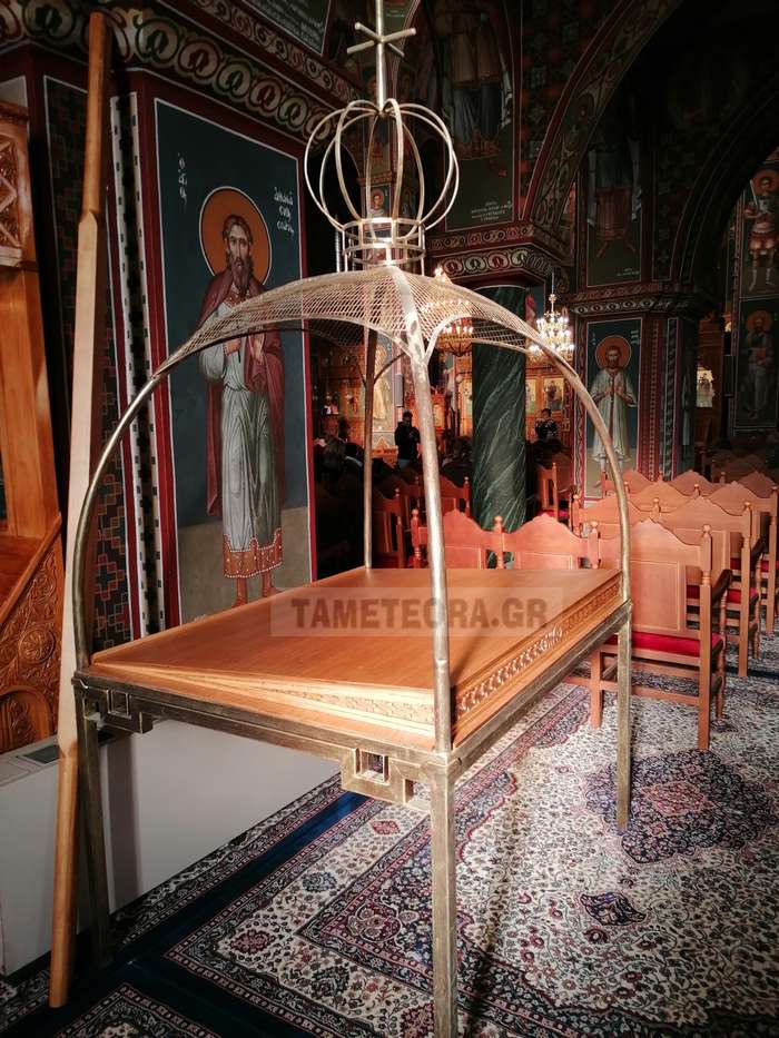 Όπως κατέγραψε ο φωτογραφικός φακός της ιστοσελίδας tameteora.gr, ο καινούργιος επιτάφιος βρίσκεται ήδη στον Μητροπολιτικό ναό και είναι εντελώς διαφορετικός σε σχήμα και υλικό κατασκευής από τον παλαιό, καθώς και αρκετά ελαφρύτερος.