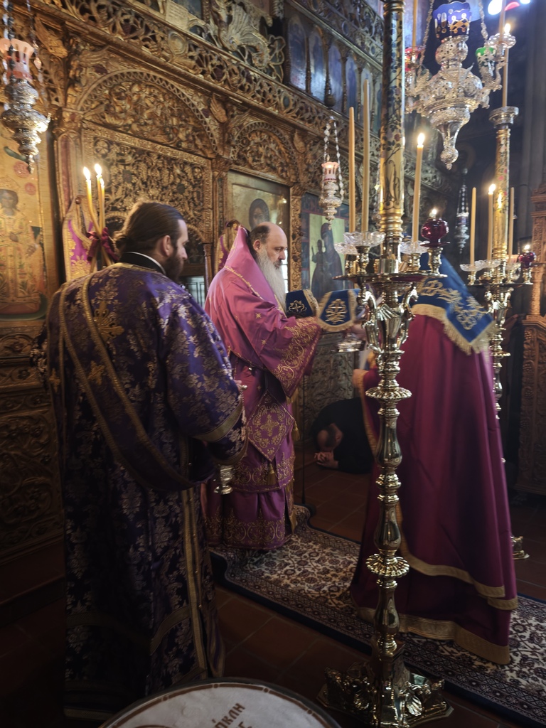 Ο κ. Θεόκλητος τέλεσε την χαρακτηριστικότερη ακολουθία της περιόδου, την θεία Λειτουργία των Προηγιασμένων Τιμίων Δώρων, στο Καθολικό της Ιεράς Μονής της Μεταμορφώσεως του Σωτήρος Μεγάλου Μετεώρου, με την συμπροσευχητική συμμετοχή του Σεβ. Μητροπολίτου Θεσσαλιώτιδος και Φαναριοφερσάλων κ. Τιμοθέου, ο οποίος αυθόρμητα έσπευσε να ευχηθεί στον Μητροπολίτη Σταγών και Μετεώρων.
