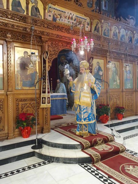 Στην σύντομη προσλαλιά του προς το πολυπληθές εκκλησίασμα, ο κ. Θεόκλητος μίλησε για την σημασία της εορτής των Θεοφανείων και την δυνατότητα που μας δίνει ο Θεός με το γεγονός αυτό, να τον δεχθούμε στις καρδιές μας αφού πρώτα δημιουργήσουμε οι ίδιοι τις προϋποθέσεις που απαιτούνται. «Ἐπεφάνη ἡ Χάρις τοῦ Θεοῦ ἡ σωτήριος πᾶσιν ἀνθρώποις» σημείωσε, “και αυτό είναι που δίνει σε όλη την ανθρωπότητα την χαρά και την αισιοδοξία που χρειάζεται”. “Στην Εκκλησία” τόνισε, “δεν υπάρχουν διακρίσεις μεταξύ των ανθρώπων. Όλοι γινόμαστε δεκτοί με τον ίδιο τρόπο και την ίδια αγάπη, με σκοπό την μεταμόρφωση του καθενός μας”.