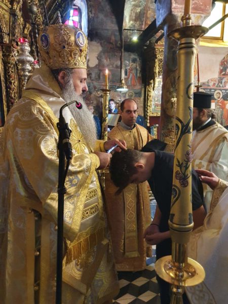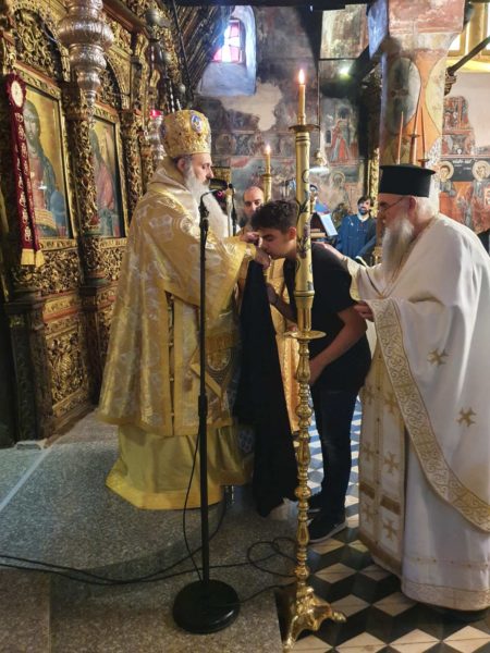 Ο Σεβασμιώτατος Μητροπολίτης συνεχάρη τον νέο Αναγνώστη, ο οποίος παρά τον νεαρόν της ηλικίας του, έχει εκκλησιαστικό ήθος και ωριμότητα.