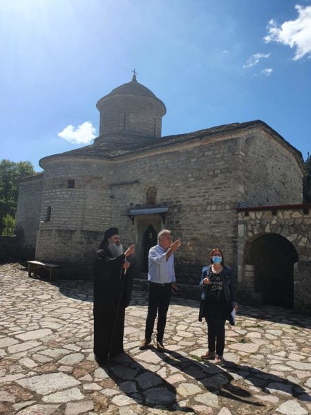 Ο κ. Θεόκλητος, κατά την επιστροφή του, επισκέφθηκε την Ιερά Μονή Παναγίας Γαλακτροφούσης Ανθούσας, συνοδεία του Αντιπεριφερειάρχη Τρικάλων κ. Χρήστου Μιχαλάκη και της προϊσταμένης της Εφορείας Αρχαιοτήτων Τρικάλων κ. Κρυσταλλίας Μαντζανά, όπου ενημερώθηκε για τα έργα συντήρησης και αποκατάστασης που αναμένεται να πραγματοποιηθούν εντός των επόμενων μηνών. Τα έργα έχουν εγκριθεί από το ΚΑΣ και έχει εξασφαλισθεί η χρηματοδότησή τους κατόπιν αόκνων ενεργειών του κ. Μιχαλάκη.