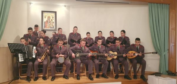 Η πολυμελής χορωδία, αποτελούμενη από σπουδαστές και σπουδάστριες της Σχολής, έψαλλε με αριστοτεχνικό τρόπο χριστουγεννιάτικα κάλαντα από διάφορες περιοχές της πατρίδας μας, με τη συνοδεία μουσικών οργάνων.