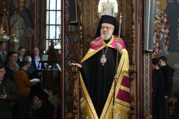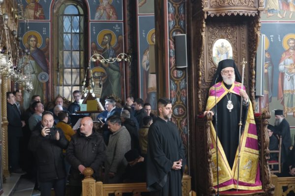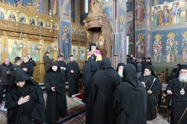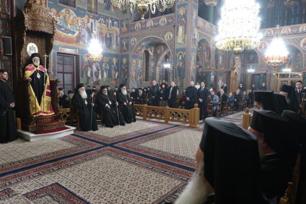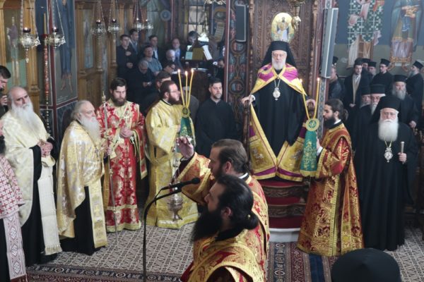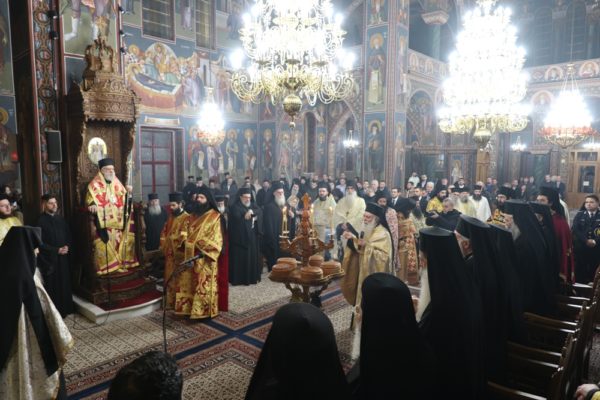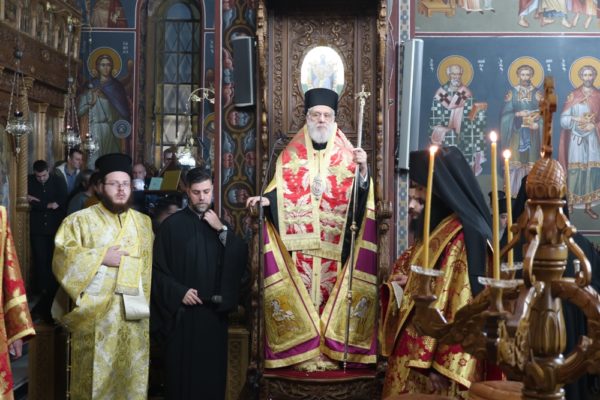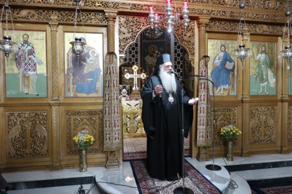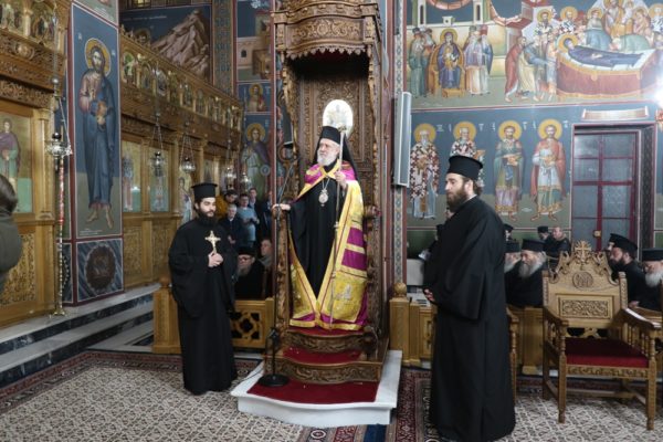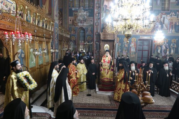 Ο Σεβασμιώτατος κ. Θεόκλητος, ο οποίος, προ του πέρατος της Ακολουθίας ευχαρίστησε τους Αρχιερείς, τους εκπροσώπους των Τοπικών Αρχών, τον ιερό Κλήρο, τα Μοναχικά Τάγματα και τον περιεστώτα λαό για την παρουσία και την ευχητική συμμετοχή τους.