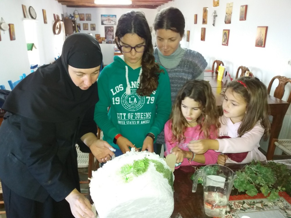 Η Μοναχή Δωροθέα ευχαρίστησε τους εκπαιδευτικούς και τα παιδιά της Σικίνου για την αγάπη τους προς το Μοναστήρι και το ενδιαφέρον τους για την Ορθόδοξη εικονογραφία και τους ευχήθηκε για τις εορτές των Χριστουγέννων και της Πρωτοχρονιάς.