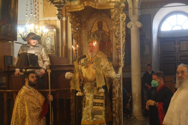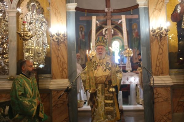 Ο Σεβασμιώτατος συνέψαλε μετά των πολυπληθών εκκλησιασθέντων το “Ανάστα ο Θεός!”, ραίνοντας τον πιστό λαό με φύλλα λεμονιάς, κατά το επιχώριο έθιμο.