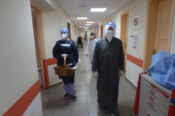 Προηγουμένως, ο Σεβασμιώτατος κ. Δωρόθεος Β’ περιήλθε όλους τους θαλάμους των ασθενών, ευχόμενος πλήρη ανάρρωση και προσφέροντάς τους, ωσαύτως, κόκκινα αυγά.