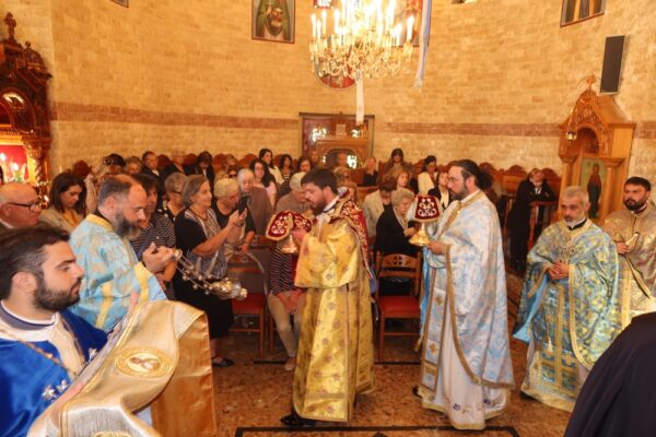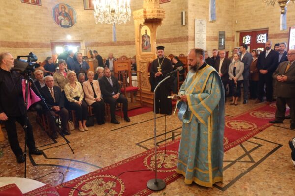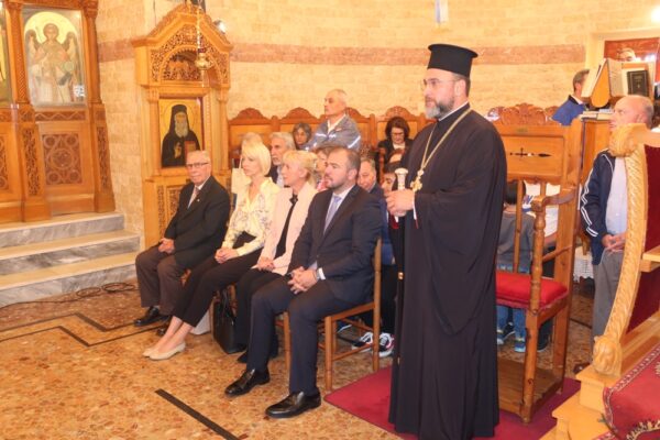 Στον Ιερό Ναό του Αγίου Μεγαλομάρτυρος Δημητρίου Ερμουπόλεως, στην περιοχή όπου το 1936 ευρέθη η θαυματουργός Εικόνα του Αγίου, τελέσθηκε σήμερα το πρωί Δισαρχιερατική Θεία Λειτουργία, συνιερουργούντων των Σεβασμιωτάτων Μητροπολιτών Βρεσθένης κ. Θεοκλήτου και Σύρου κ. Δωροθέου Β’, καταπλεύσαντος με ταχύπλοο της γραμμής από τον Πειραιά, με την παρουσία των Βουλευτών Κυκλάδων της ΝΔ κας Αικατ. Μονογυιού και Φιλ. Φόρτωμα, της Αντιδημάρχου Σύρου – Ερμούπολης κας Αλίκη Λεονταρίτη, της Προέδρου της Τοπικής Κοινότητας Ερμούπολης κας Ανθής Χαλκιά, του Δημοτικού Συμβούλου κ. Δημ. Κοσμά, του διετελέσαντος Προέδρου της Τοπικής Κοινότητος Ποσειδωνίας κ. Δημ. Νταλαχάνη και πλήθους προσκυνητών, οι οποίοι είχαν συρρεύσει στο Ναό, παρά τους πνέοντες ισχυρούς ανέμους στην περιοχή.