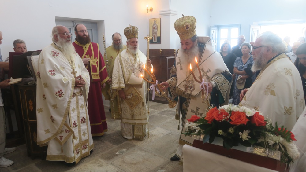 Με την άδεια του Σεβασμιωτάτου Μητροπολίτου Θήρας κ. Επιφανίου, οι Σεβασμιώτατοι Μητροπολίτες Πειραιώς κ. Σεραφείμ και Σύρου κ. Δωρόθεος Β’ συνιερούργησαν στο Ναΰδριο της Αγίας Αθήνας, στη Σαντορίνη, ιδιοκτησίας Αθανασίου και Μαρίνης Μαρτίνου, στο οποίο χθες τέλεσε τον Εσπερινό και ομίλησε ο Σεβασμιώτατος Μητροπολίτης Πειραιώς κ. Σεραφείμ.