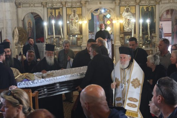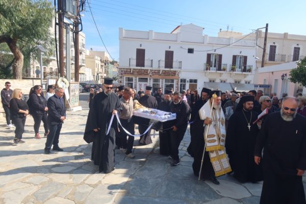 Σε ατμόσφαιρα βαθιάς κατ’ άνθρωπον συγκινήσεως τελέστηκε η Εξόδιος Ακολουθία του αοιδίμου Πρωτοπρεσβύτερο Ευάγγελου Σίμου από τον Σεβασμιώτατο Μητροπολίτη Σύρου κ. Δωρόθεο, στον Ιερό Ναό Αγίου Κωνσταντίνου, στην περιοχή «Πέτρα» της Ερμούπολης.