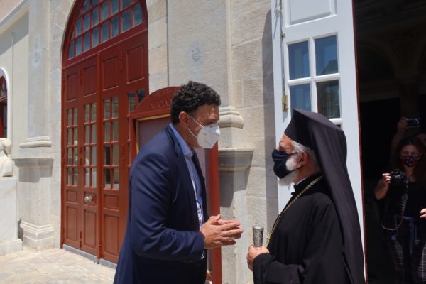 Ακολούθως, ο Υπουργός Υγείας κ. Βασίλειος Κικίλιας πραγματοποίησε εθιμοτυπική επίσκεψη στο Γραφείο του Σεβασμιωτάτου Μητροπολίτου Σύρου κ. Δωροθέου Β΄ στο Διοικητικό Κέντρο της Ιεράς Μητροπόλεως.