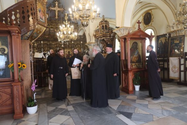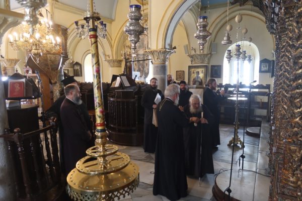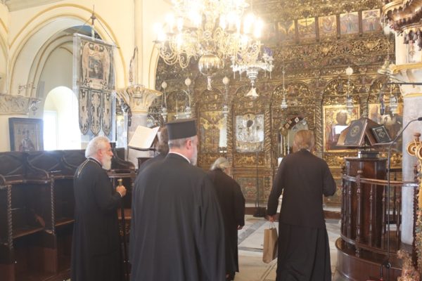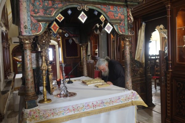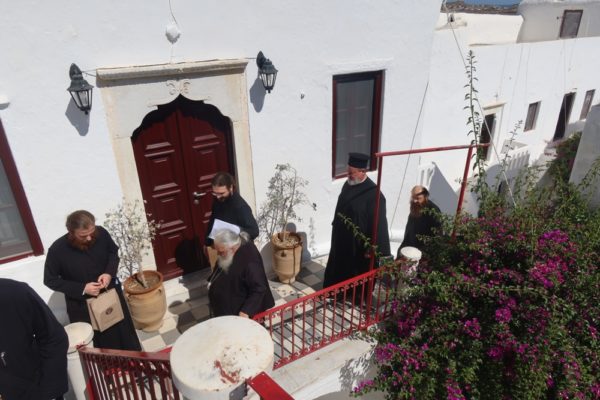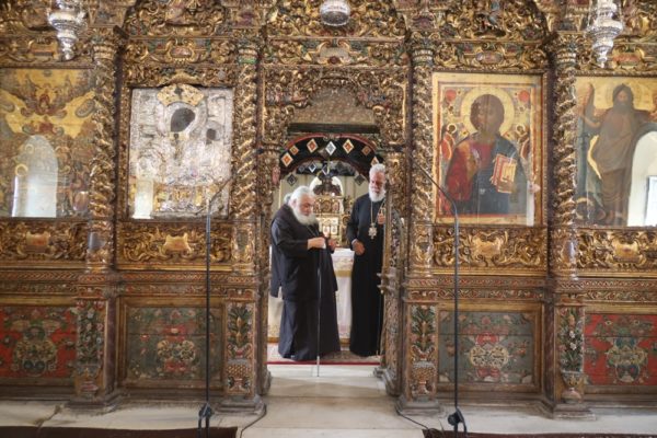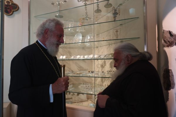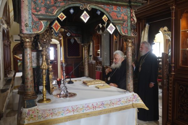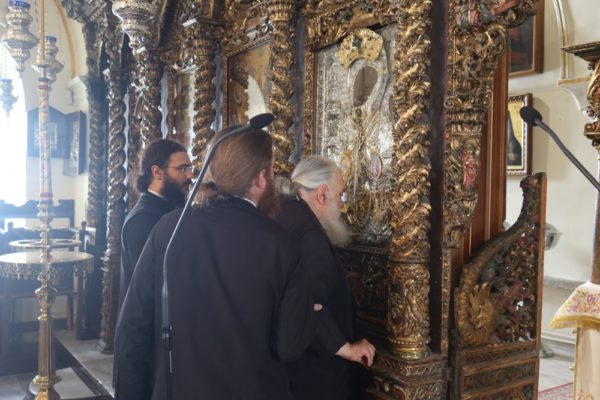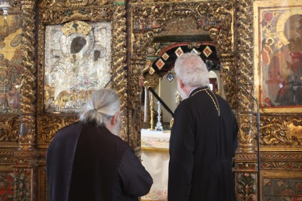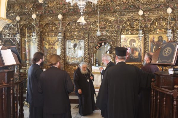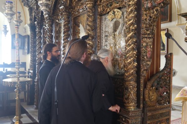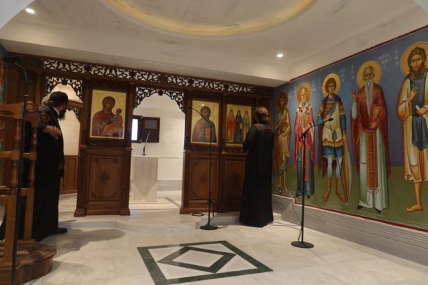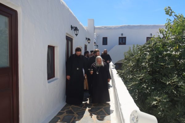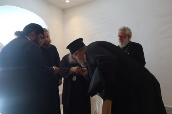 Προσκύνησε δε το διαμορφωθέν Παρεκκλήσιο των νεοφανών Αγίων Πατέρων Πορφυρίου, Παϊσίου και Ιακώβου, τον Παρακλητικό Κανόνα των οποίων, που θα ψαλεί κατά τα εγκαίνια του Παρεκκλησίου στις 14 Οκτωβρίου, κατόπιν σχετικού αιτήματος του Ηγουμένου Αρχιμ. Αλεξίου Παπαδόπουλου, συνέθεσε.