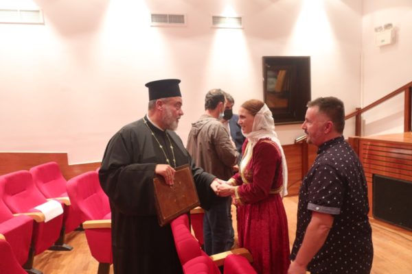 Το απόγευμα, στο «Γρυπάρειο Πολιτιστικό Κέντρο» ο Σεβασμιώτατος Μητροπολίτης Εδέσσης κ. Ιωήλ, με τον Σεβασμιώτατο Μητροπολίτη Σύρου κ. Δωρόθεο Β’ , τους Εφημερίους της νήσου, τη Βουλευτή των Κυκλάδων κα Μονογυιού, το Δήμαρχο Μυκόνου, τον Θεματικό Αντιπεριφερειάρχη κ. Πρίγγο, τον Διευθυντή του Α.Τ., τον Λιμενάρχη, τον Διοικητή της 6ης ΜΣΕΠ, τον Πρόεδρο του Δημοτικού Συμβουλίου, την κα Ελένη Γρυπάρη, και όσους Μυκονίους επέτρεπαν τα υγειονομικά Πρωτόκολλα, παρακολούθησαν το Θεατρικό Δρώμενο «ΜΑΝΤΩ, η Ηρωίδα της Μυκόνου» του Γεωργίου Κοζυράκη, σε σκηνοθεσία Μενέλαου Τζαβέλλα, το οποίο και καταχειροκροτήθηκε.