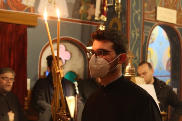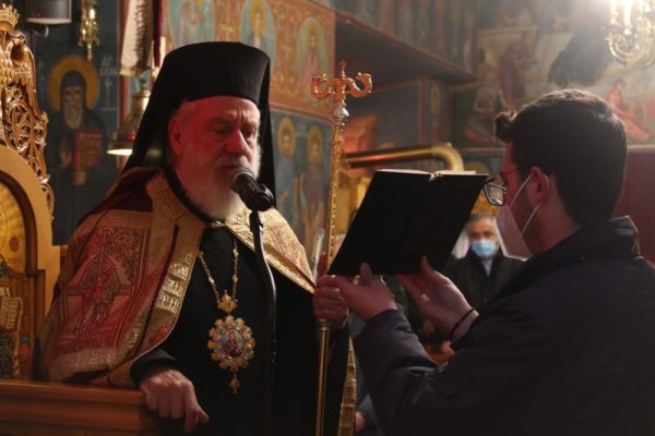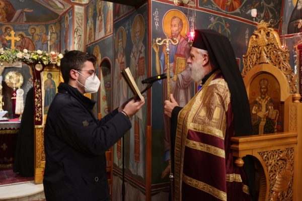 Προ του πέρατος της Θείας Λειτουργίας, ο Σεβασμιώτατος κ. Δωρόθεος Β΄ χειροθέτησε Αναγνώστη τον ευσεβέστατο κ. Νικόλαο Αντωνίου Λαμπρόπουλο, Μηχανικό Αεροπορίας, ο οποίος εκκλησιάζεται ανελλιπώς και διακονεί το Αναλόγιο του Ναού.