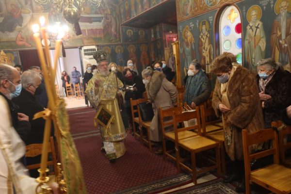 Ο Σεβασμιώτατος Μητροπολίτης Σύρου, Τήνου, Άνδρου, Κέας και Μήλου κ. Δωρόθεος Β’ ιερούργησε σήμερα, Δευτέρα 24 Ιανουαρίου 2022, το πρωί στο τιμώμενο επ` ονόματι της Οσίας Ξένης Μετόχιο της Ιεράς Μητροπόλεως, επί της οδού Αχαρνών, στην περιοχή Κάτω Πατησίων Αθηνών, όπου και η Φοιτητική Εστία της Ιεράς Μητροπόλεως, με την τήρηση όλων των μέτρων υγειονομικής προστασίας από τους παραστάντες πιστούς, οι οποίοι προσήλθαν, παρά το δριμύ ψύχος και την πυκνή χιονόπτωση και παρακολούθησαν τη Θεία Λειτουργία.