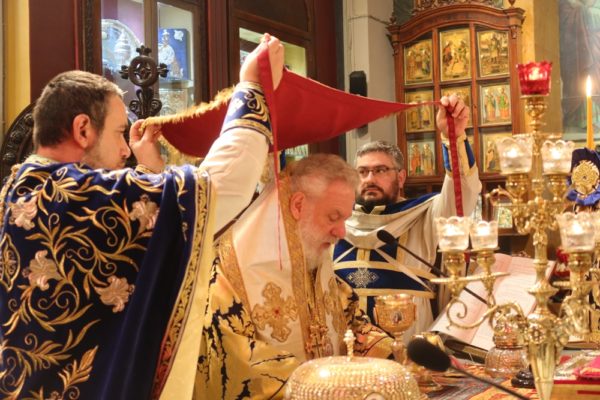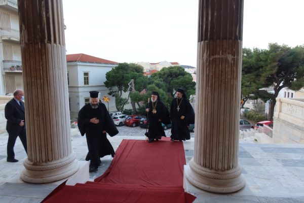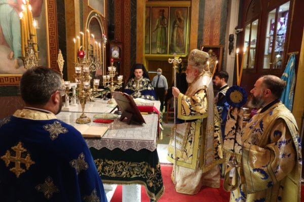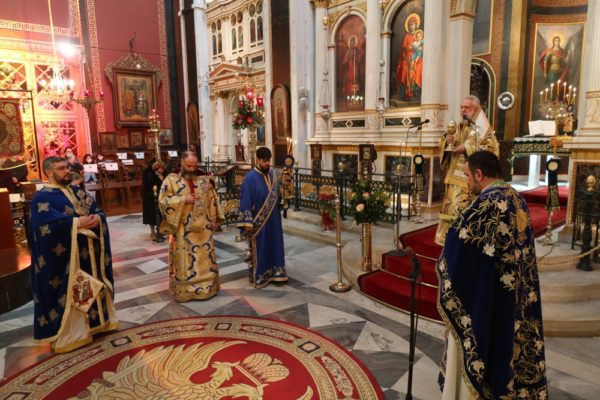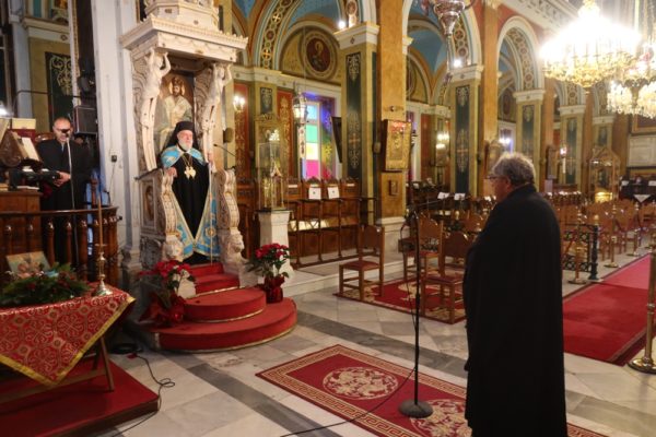 Ο Σεβασμιώτατος Μητροπολίτης Σύρου κ. Δωρόθεος Β’ ιερούργησε σήμερα το πρωί στον Ιερό Καθεδρικό Ναό του Αγίου Νικολάου Ερμουπόλεως, συμπαραστατούμενος από τους Εφημερίους του Ναού και τους Διακόνους του, με την παρουσία του Χωρικού Αντιπεριφερειάρχη Κυκλάδων κ. Γ. Λεονταρίτη, του Αντιπεριφερειάρχη Μεταφορών κ. Μ. Δαδάου, της Προέδρου της Τοπικής Κοινότητας Ερμουπόλεως κας Ανθής Χαλκιά, της διατελεσάσης Βουλευτού Κυκλάδων κας Άριας Μανούσου και περιορισμένου αριθμού πιστών, λόγω των ισχυόντων περιοριστικών μέτρων.