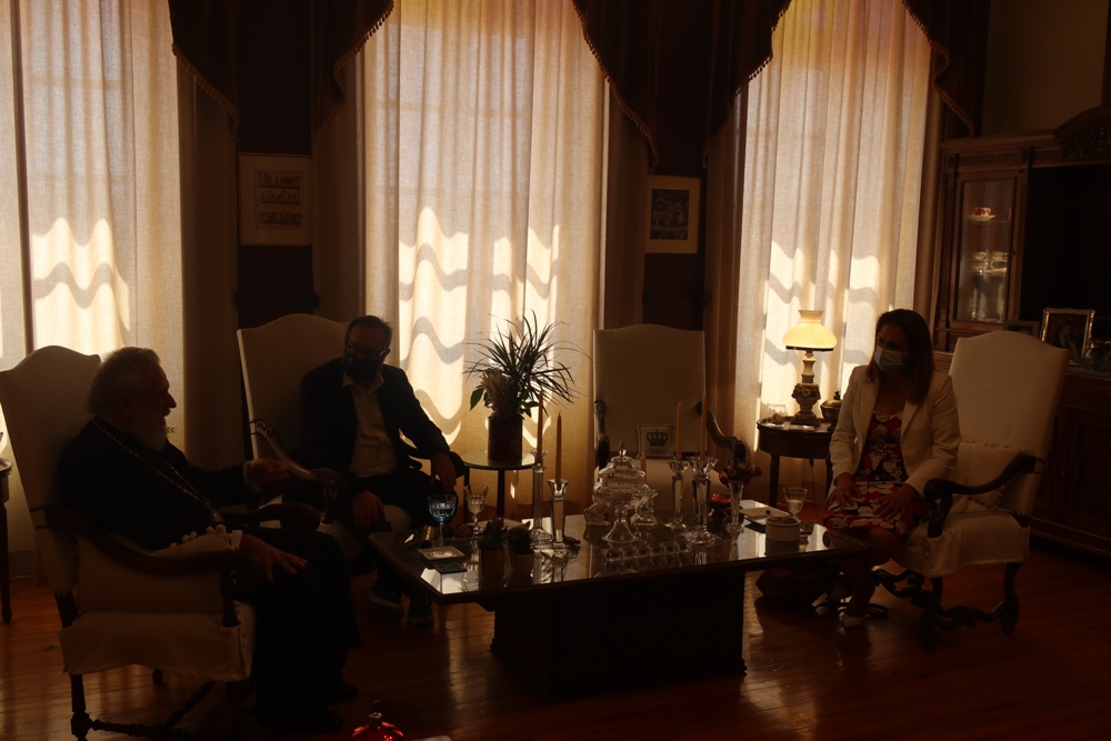 Τον Σεβασμιώτατο Μητροπολίτη Σύρου κ. Δωρόθεο Β’ επισκέφθηκαν εθιμοτυπικά στο Επισκοπείο Ερμουπόλεως η Γενική Γραμματέας Τουριστικής Πολιτικής και Ανάπτυξης κα Βίκυ Λοΐζου και ο Γενικός Γραμματέας Λιμένων, Λιμενικής Πολιτικής και Ναυτιλιακών Επενδύσεων κ. Ευάγγελος Κυριαζόπουλος, συνοδευόμενοι από τις Περιφερειακές και Λιμενικές Αρχές.