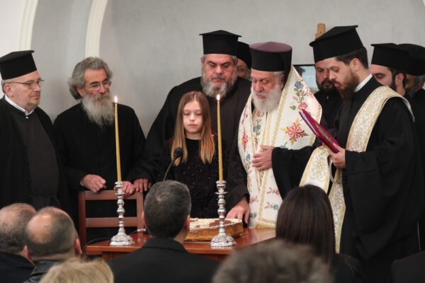 Ο Σεβασμιώτατος κ. Δωρόθεος Β’, αφού παρουσίασε τον απολογισμό του επιτελεσθέντος το 2019 έργου της Ιεράς Μητροπόλεως, ο οποίος παρατίθεται κατωτέρω αυτούσιος, ευχαρίστησε όλους τους συνεργάτες του και ευλόγησε την πίττα του Αγίου Βασιλείου, που κατά το επικρατήσαν έθος, έκοψε η θυγατέρα του κ. Χανδακά, Αλεξάνδρα.