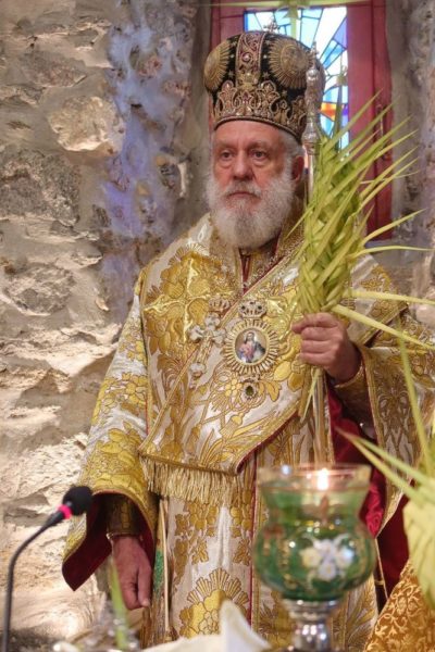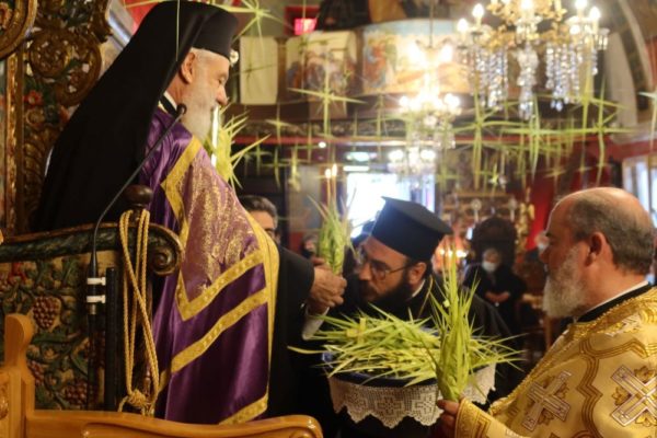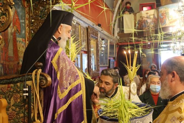 Ο Σεβασμιώτατος κ. Δωρόθεος Β’, στην ομιλία του αναφέρθηκε στην είσοδο στη Μεγάλη Εβδομάδα και κάλεσε τους πιστούς ως «άκακοι Παίδες» φέροντες στα χέρια τα Βαΐα των φοινίκων να ακολουθήσουν τον Χριστό στη σταυρική αλλά και θυσιαστική πορεία προς την Ανάσταση. Ευχήθηκε σε όλους για το Άγιο Πάσχα, και, αφού συνεχάρη τους Εφημερίους για τον προευπρεπισμό του Ναού και τους ευχαρίστησε για την φιλοξενία τους, εκάλεσε, τηρώντας το έθιμο της Βαϊοφόρου λιτανεύσεως εντός της Χώρας μετά τη Θεία Λειτουργία, κάτι που και εφέτος δεν πραγματοποιήθηκε, να ψάλλουν όλοι μαζί τα δημώδη τραγούδια των Βαΐων, κατά το έθος.