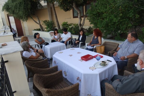 Συνάντηση με την Υπεύθυνη του Ραδιοφωνικού Σταθμού της Ιεράς Μητροπόλεως Σύρου, Τήνου, Άνδρου, Κέας και Μήλου «ΑΠΟ ΤΟΝ ΑΜΒΩΝΑ ΤΗΣ ΣΥΡΟΥ ΚΑΙ ΜΕ ΤΑ ΚΥΜΑΤΑ ΤΟΥ ΑΙΓΑΙΟΥ», που εκπέμπει στα 95,4 FM, κα Αργυρένια Παραμάνη, και τους συνεργάτες του Σταθμού είχε χθες το απόγευμα (Τρίτη, 29 Σεπτεμβρίου), ο Σεβασμιώτατος Μητροπολίτης Σύρου, Τήνου, Άνδρου, Κέας και Μήλου κ. Δωρόθεος στο Επισκοπείο Ερμουπόλεως.