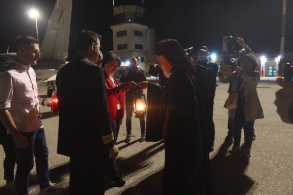 Στον Αερολιμένα Σύρου, με ειδική πτήση που χορήγησαν η ΟΝΕΧ και η «ΙΝΤΕRAMERICAN», έφτασε το εκ του Παναγίου Τάφου και εφέτος εκπηγάσαν Άγιο Φως, το οποίο υποδέχθηκαν με τις νενομισμένες τιμές ο Σεβασμιώτατος κ. Δωρόθεος Β΄, σύσσωμες οι Πολιτικές, Αυτοδιοικητικές, Στρατιωτικές, Λιμενικές και Πυροσβεστικές Αρχές της νήσου, εκπρόσωποι των Ενοριών και πλήθος πιστών.