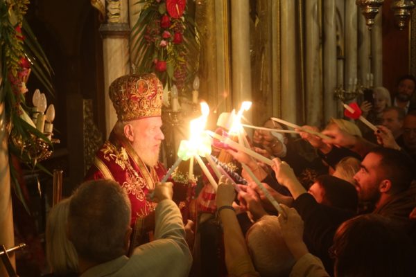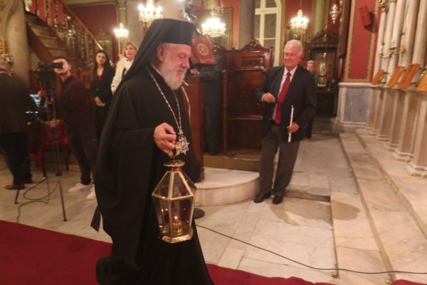 Ο Σεβασμιώτατος ευχαρίστησε τον τον Πρόεδρο της ΟΝΕΧ κ. Πάνο Ξενοκώστα και την «ΙΝΤΕRAMERICAN», διότι χάρη σ’ αυτούς η Σύρος απολαμβάνει τα τελευταία χρόνια την ευλογία της εγκαίρου ελεύσεως του Αγίου Φωτός, και την Αερολιμενάρχη Σύρου κα Πρέκα, η οποία επιμελήθηκε και προετοίμασε ως άριστα την Τελετή της υποδοχής.