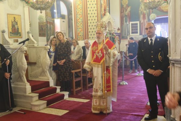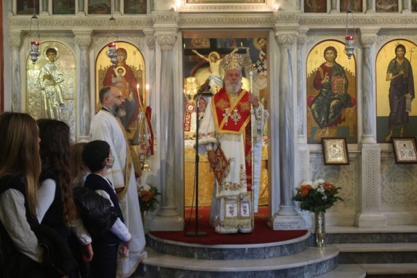 Ο Σεβασμιώτατος κ. Δωρόθεος Β΄ απηύθυνε προς το εκκλησίασμα λόγους Κατηχητικού περιεχομένου και ευχήθηκε για το αρξάμενο Σαρανταήμερο των Χριστουγέννων, ενώ ευχαρίστησε και συνεχάρη τον Εφημέριο του Ναού, Πρωτοπρεσβύτερο Νικόλαο Ζαχαρώδη, για τη μέριμνά του προς τον Ιερό Ναό και την προετοιμασία της πανηγύρεως, τους Ιεροψάλτες, τους Επιτρόπους και όλους τους παρισταμένους για τη συμμετοχή τους, ιδιαιτέρως δε τους μαθητές και τους εκπαιδευτικούς.