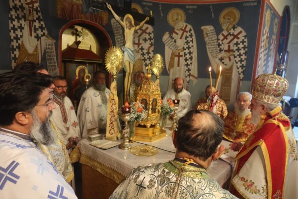 Χθές, ο Σεβασμιώτατος Μητροπολίτης Σύρου μετέβη στο πανηγυρίζον ιερό Παρεκκλήσιο του Αγίου Νεομάρτυρος Κωνσταντίνου του Υδραίου, στην απομακρυσμένη περιοχή της Δυτικής Άνδρου Αμμόλοχο, στον Κάβο Ντόρο, και ευχήθηκε στον κτήτορά του παλαίμαχο πλοίαρχο, καπετάν Κωνσταντίνο Τζώρτζη, τον Υδραίο.