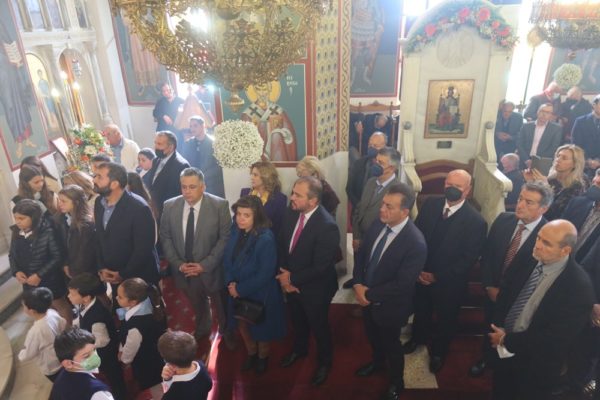 Η Θεία Λειτουργία τελέστηκε με τη συλλειτουργική συμμετοχή του Ηγουμένου της Ιεράς Μονής Παναχράντου, Αρχιμ. Ευδοκίμου, του Αρχιερατικού Επιτρόπου και Εφημερίων της Άνδρου και την παρουσία των Βουλευτών Κυκλάδων κ.κ. Ιω. Βρούτση και Φιλ. Φόρτωμα, του Επάρχου Άνδρου, του Δημάρχου, Αντιδημάρχων και Δημοτικών Συμβούλων Άνδρου, Προέδρων Τοπικών Κοινοτήτων, του Διοικητού και Αξιωματικὠν της Ναυτικής Βάσης Αμμολόχου, του Διευθυντή του Περιφερειακού Κλιμακίου της Πυροσβεστικής Υπηρεσίας Άνδρου, του Λιμενάρχη Άνδρου και Αξιωματικών του Λιμενικού Σώματος και της Ελληνικής Αστυνομίας, του Διευθυντή, Εκπαιδευτικών και Μαθητών του Δημοτικού Σχολείου Μπατσίου, και πλείστων πιστών.