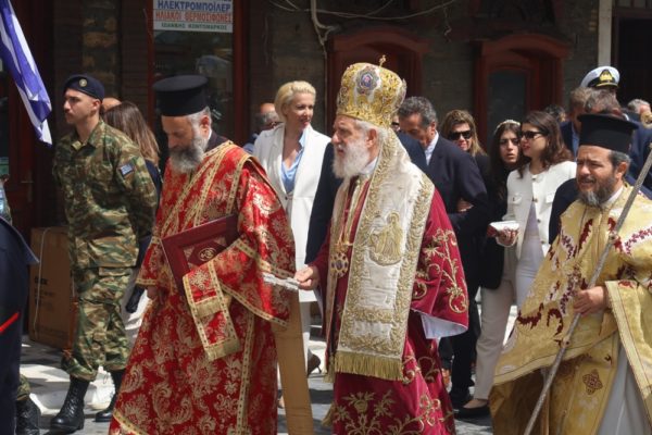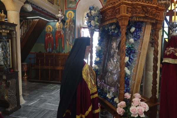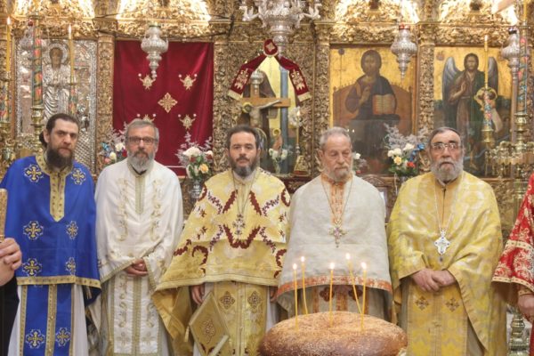 Ευχαρίστησε τέλος και συνεχάρη τον επί τριακονταετία Εφημέριο του Ναού, Πρωτοπρ. Μιχαήλ Καλαμπούκη και τους συνεργάτες του για την προετοιμασία και επιτυχή περαίωση της Πανηγύρεως, αλλά και για το επίμοχθο έργο συντηρήσεως και εξωραϊσμού του Ναού.